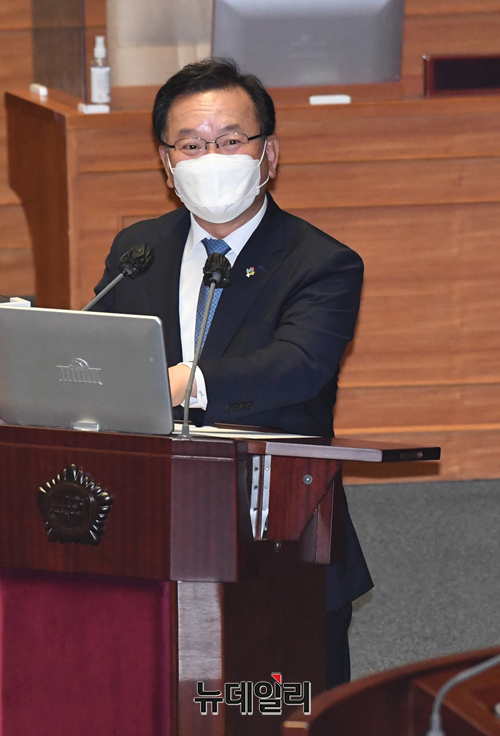 김부겸 국무총리가 22일 오후 국회에서 열린 본회의에서 정치·외교·통일·안보에 관한 대정부질문에 답변하고 있다. (사진=공동취재단)