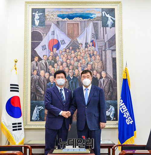 송영길 더불어민주당 당대표가 22일 오전 국회 국회에서 싱하이밍 주한중국대사 예방을 받고 기념촬영을 하고 있다. (사진=더불어민주당)