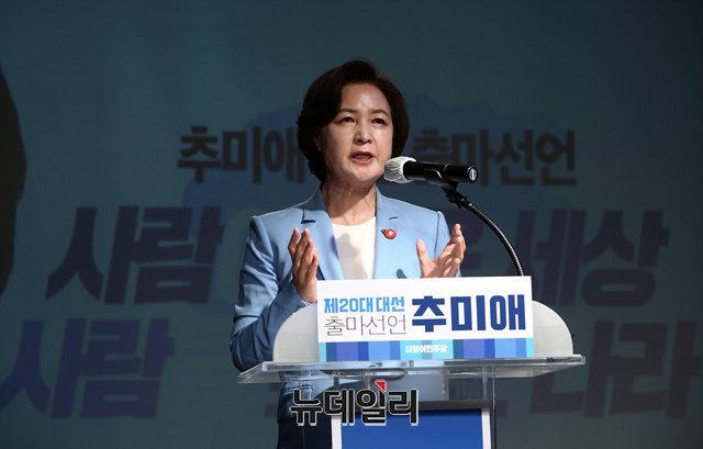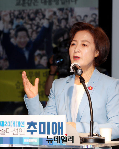 추미애 전 법무부 장관이 23일 오후 경기 파주시 헤이리 잇탈리스튜디오에서 20대 대선 출마선언을 하고 있다. (사진=공동취재단)