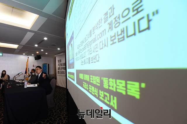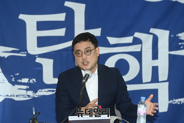 변희재 미디어워치 대표고문이 25일 오후 서울 중구 한국프레스센터에서 열린 '제2회 박근혜 대통령 불법 탄핵에 관한 법조세미나'에서 '김한수의 태블릿PC'를 주제로 강연을 하고 있다.