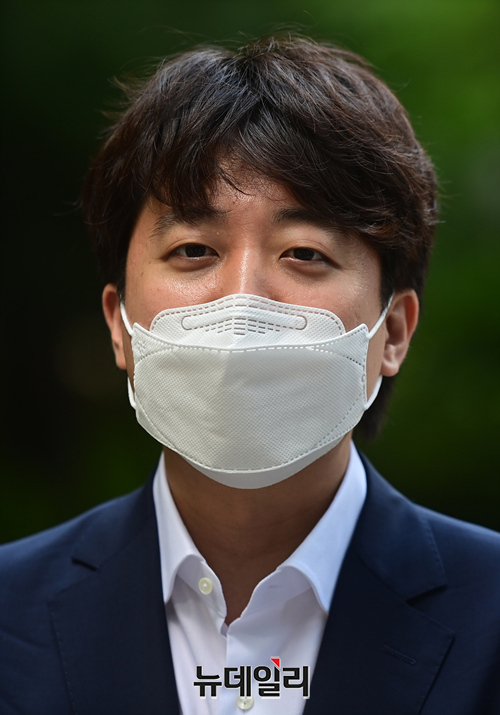 이준석 국민의힘 당대표가 27일 오후 서울 영등포구 더플러스 스튜디오에서 열린 대변인 선발토론회 '나는국대다 16강'을 앞두고 취재진의 질문에 답하고 있다.16강은 4명씩 팀을 나눠 2부로 진행된다. 토론회 주제는 '만65세 이상 지하철 무임승차 찬반' '제5차 재난지원금 전국민 지급 찬반' 등 2개다.심사위원은 이준석 당대표, 배현진 최고위원, 김용태 청년최고위원, 황보승희 수석대변인이 맡았다. 토론회는 국민의힘 유튜브 채널 오른소리와 뉴데일리TV 등으로 생중계 된다.결과는 토론회가 종료되는 즉시 발표된다.