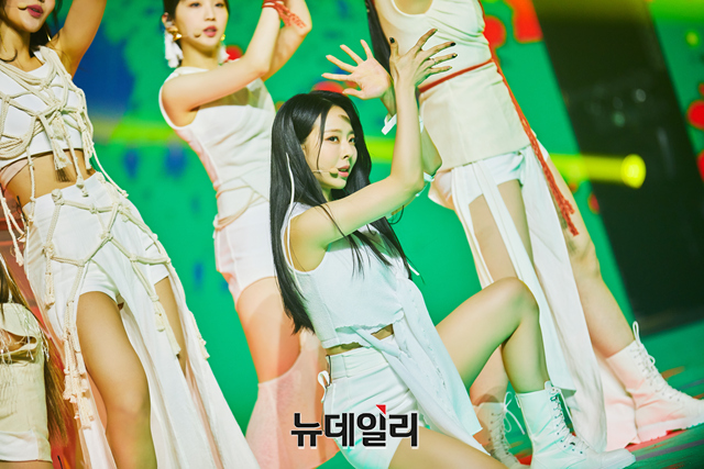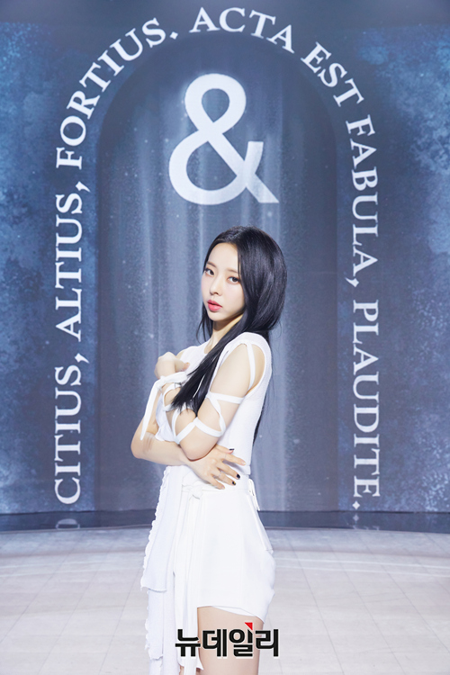 걸그룹 이달의소녀(LOONA) 멤버 비비가 28일 오후 온라인으로 진행된 네번째 미니앨범 '&(앤드)' 발매기념 기자간담회에서 포토타임을 갖고 있다.