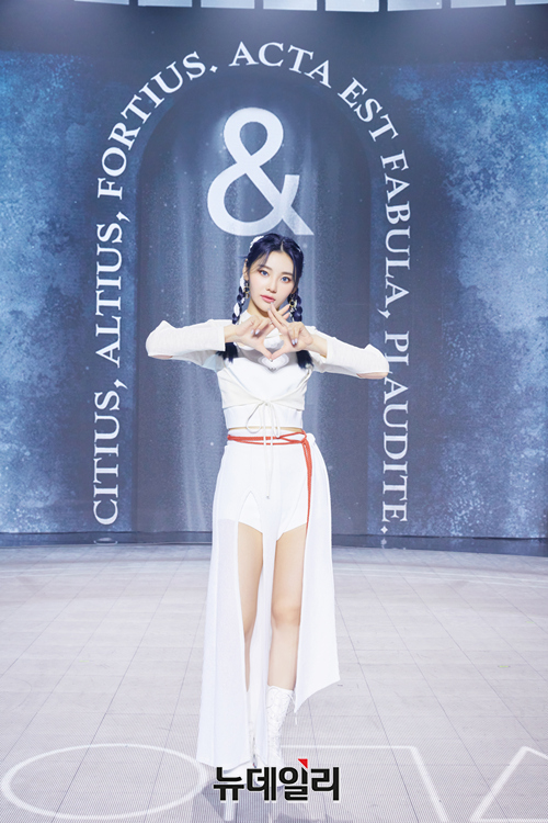 걸그룹 이달의소녀(LOONA) 멤버 진솔이 28일 오후 온라인으로 진행된 네번째 미니앨범 '&(앤드)' 발매기념 기자간담회에서 포토타임을 갖고 있다.