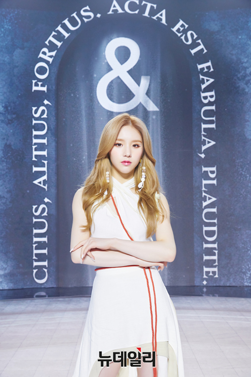 걸그룹 이달의소녀(LOONA) 멤버 희진이 28일 오후 온라인으로 진행된 네번째 미니앨범 '&(앤드)' 발매기념 기자간담회에서 포토타임을 갖고 있다.