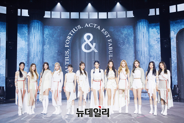 걸그룹 이달의소녀(LOONA)가 28일 오후 온라인으로 진행된 네번째 미니앨범 '&(앤드)' 발매기념 기자간담회에서 포토타임을 갖고 있다.