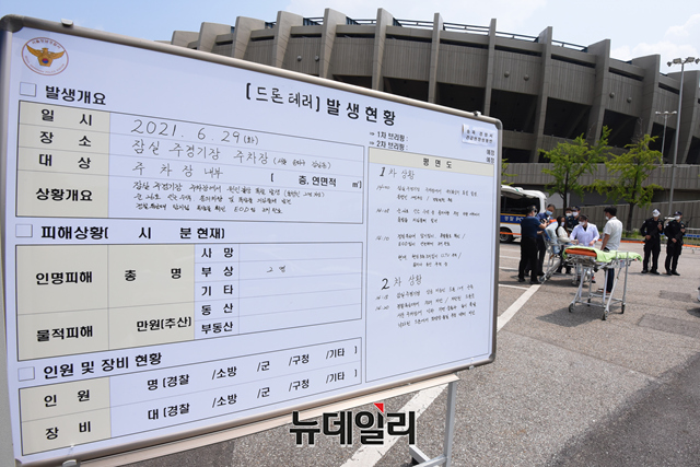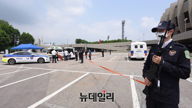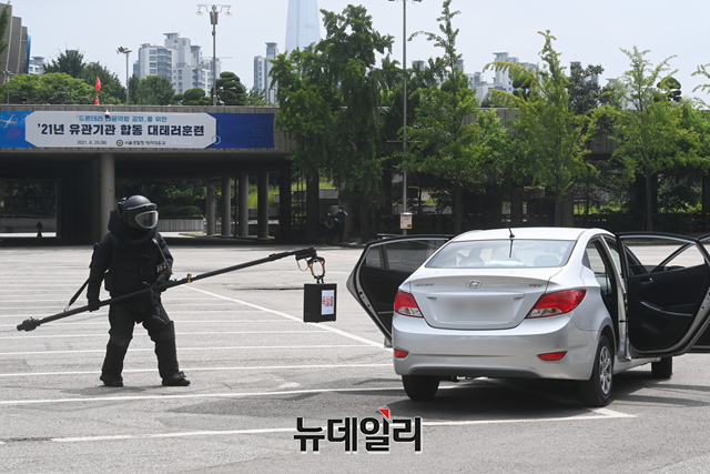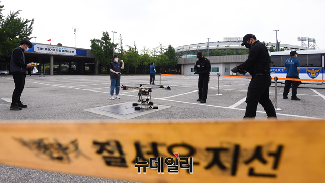 2021년 유관기관 합동 대테러 훈련 리허설이 29일 오전 서울 송파구 잠실종합운동장 일대에서 진행되고 있다. 이번 훈련은 드론 테러와 재난 등 위기 상황을 가정해 합동훈련을 전개한다.