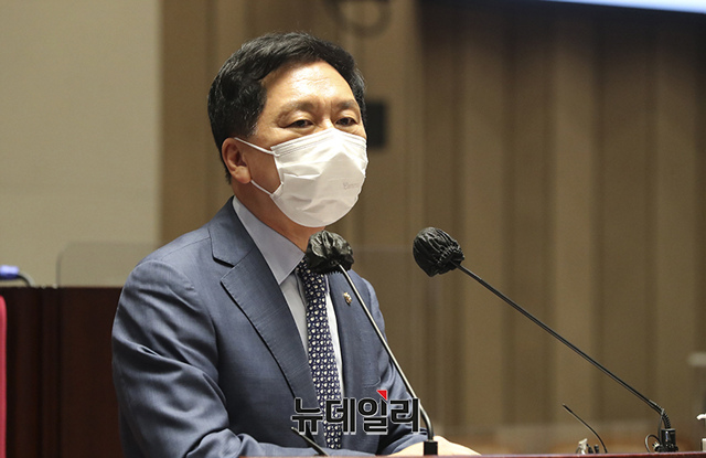 김기현 국민의힘 원내대표가 29일 국회 예결위회의장에서 열린 의원총회에 참석해 모두발언을 하고 있다. (사진=국민의힘)