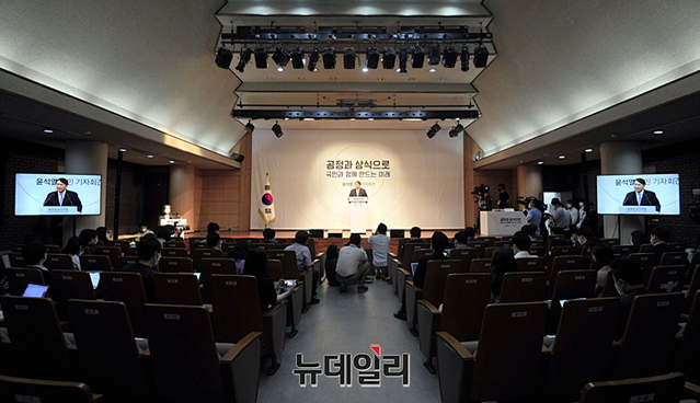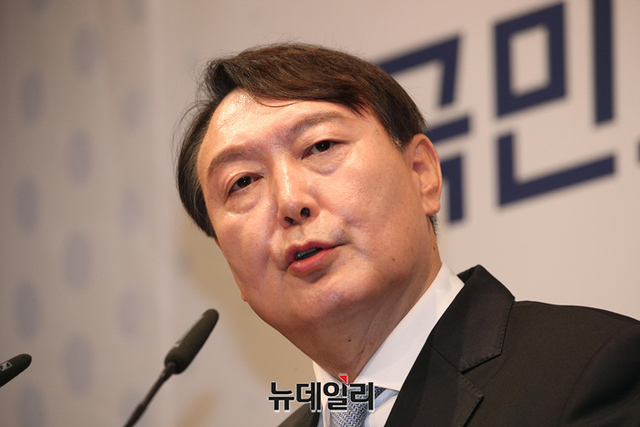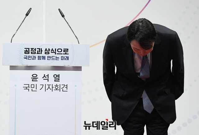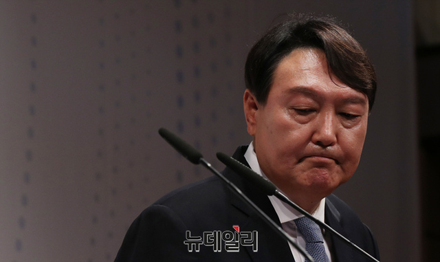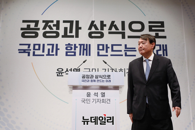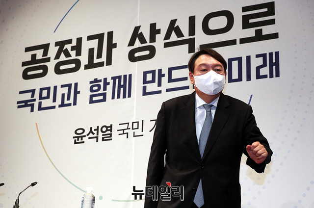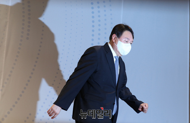 윤석열 전 검찰총장이 29일 오후 서울 서초구 매헌윤봉길의사기념관에서 대선 출마 기자회견에을 하기 위해 입장하고 있다. (사진=공동취재단)