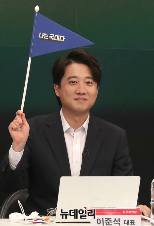 국민의힘 대변인 선발을 위한 토론 배틀 '나는 국대다(국민의힘 대변인이다)' 8강전이 30일 서울 중구 TV조선 스튜디오에서 열린 가운데 이준석 국민의힘 대표가 참석해 있다.