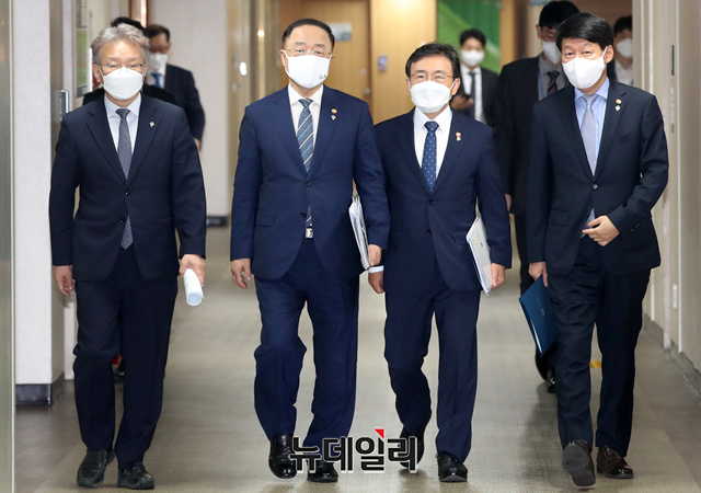이날 홍 부총리, 권덕철 보건복지부 장관, 안경덕 고용노동부 장관, 권칠승 중소벤처기업부 장관, 이재영 행정안전부 차관 등이 참석했다.
