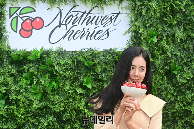 배우 한채아가 1일 오전 서울 종로구 PKM 가든에서 열린 체리데이 행사에 입장하고 있다. 한채아는 미국북서부체리협회가 주최하는 이번 행사에 체리뮤즈로 선정됐다.