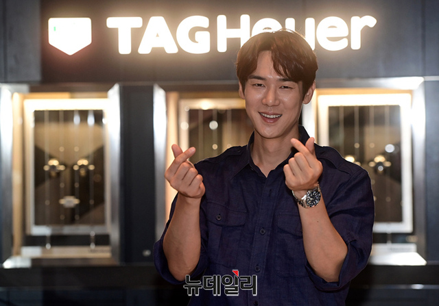 배우 유연석이 1일 오후 서울 강남구 태그호이어 청담 부티크에서 열린 '아쿠아레이서 프로페셔널 300' 런칭 행사에 참석해 포즈를 취하고 있다.