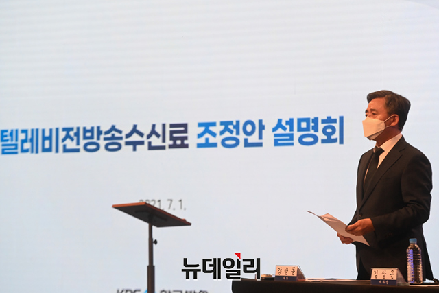 양승동 KBS 사장이 1일 오후 서울 여의도 KBS별관에서 열린 '텔레비전방송수신료 조정안' 설명회에서 발언하고 있다.