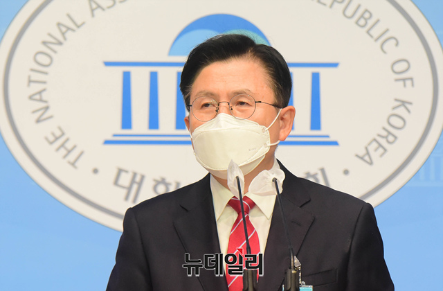 황교안 미래통합당 전 대표가 1일 오후 국회 소통관에서 제20대 대통령 선거 출마 기자회견을 갖고 있다.