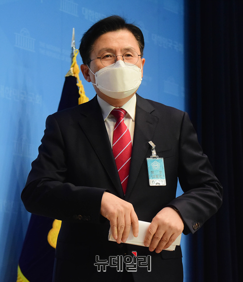 황교안 미래통합당 전 대표가 1일 오후 국회 소통관에서 열린 대선 출마 선언 기자회견을 마치고 떠나고 있다.