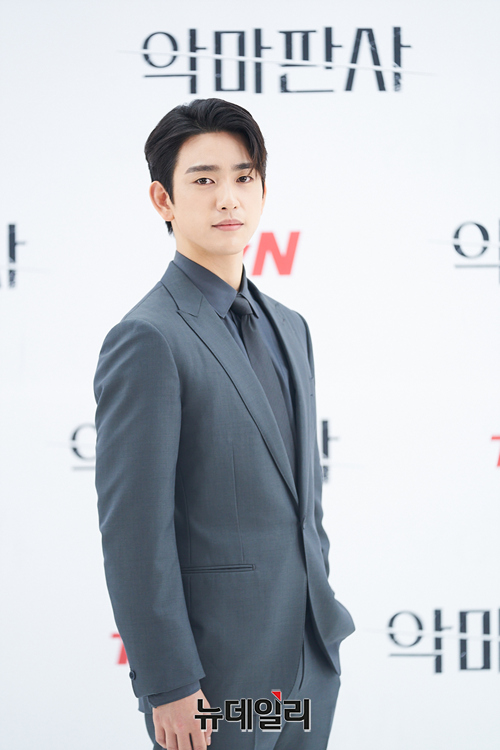 배우 진영이 1일 오후 온라인으로 진행된 tvN 새 토일드라마 '악마판사(감독 최정규)' 제작발표회에서 포토타임을 갖고 있다.