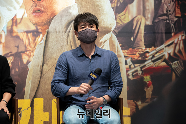 류승완 감독이 1일 오전 온라인으로 진행된 영화 '모가디슈(감독 류승완)' 제작보고회에서 포토타임을 갖고 있다.