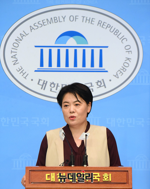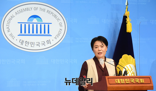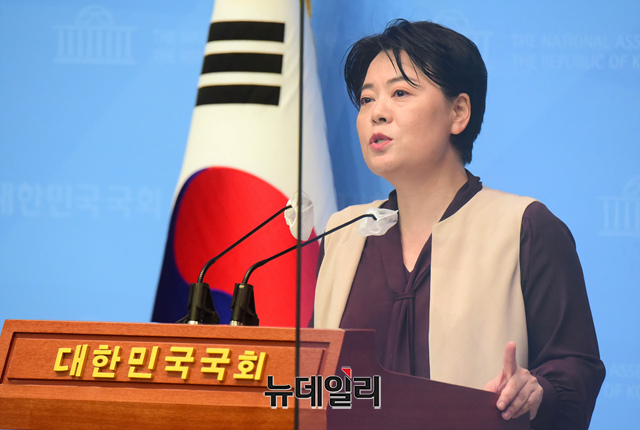 윤희숙 국민의힘 의원이 2일 오전 국회 소통관에서 기자회견을 갖고 대선 출마선언을 하고 있다.