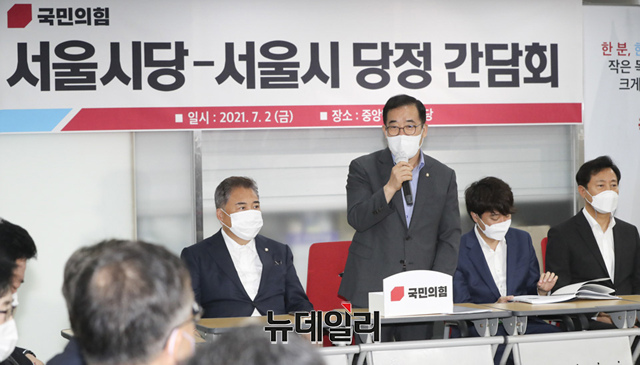 박성중 국민의힘 서울시당 위원장이 2일 오전 서울 여의도 중앙당사에서 열린 서울시당·서울특별시 당정 간담회에서 발언을 하고 있다. (사진=국민의힘)