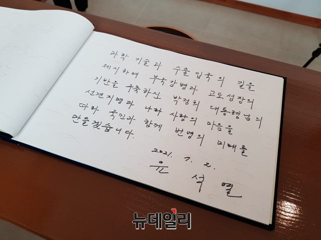 대선출마를 선언한 윤석열 전 검찰총장이 2일 후 서울 마포구 상암동 박정희 대통령 기념재단을 방문해 전시물을 둘러보고 있다. (사진=윤석열캠프)