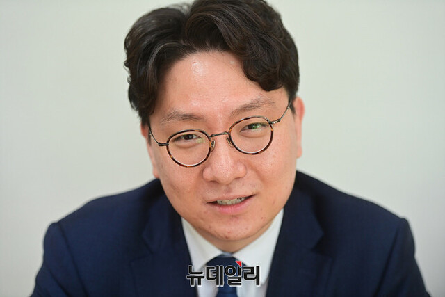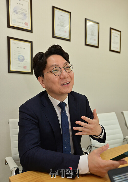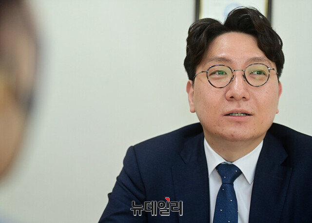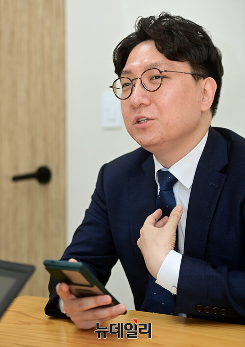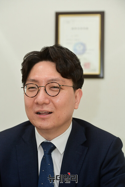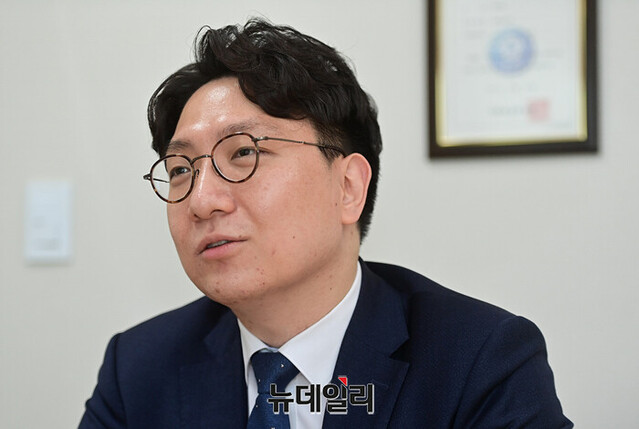 국민의힘 대변인단 최종 4인에 이름을 올린 신인규 씨가 2일 오후 서울 송파구 법률사무소 청직에서 뉴데일리와인터뷰를 갖고 있다.