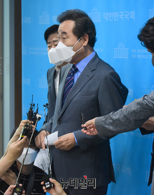 대선출마를 선언한 이낙연 더불어민주당 전 대표가 6일 오전 국회 소통관에서 토지공개념 공약 관련 기자회견을 미치고 기자들의 질문에 답하고 있다.