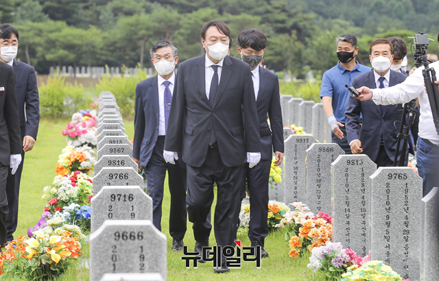 국립대전현충원을 찾은 윤 전 총장은 현충탑과 천안함 용사, 제2연평해전 전사자 및 연평도 포격도발 묘역 등에 참배했다.