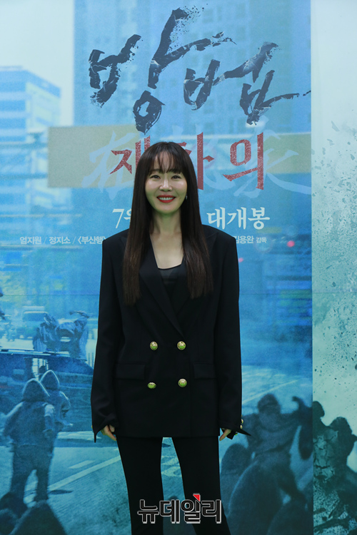배우 엄지원이 6일 오전 온라인으로 열린 영화 '방법:재차의(감독 김용완, 각본 연상호)' 제작보고회에서 포토타임을 갖고 있다.
