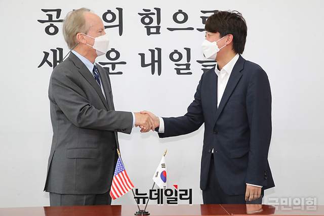 이준석 국민의힘 대표가 6일 오후 국회에서 로버트 랩슨 주한 미국대사 대리를 접견하고 있다. (사진=국민의힘)