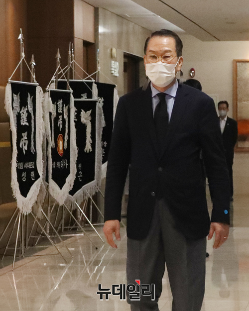 권영세 국민의힘 대외협력위원장이 8일 오전 서울 서대문구 신촌세브란스병원 장례식장에 마련된 최재형 전 감사원장의 부친상 빈소를 조문하고 있다.