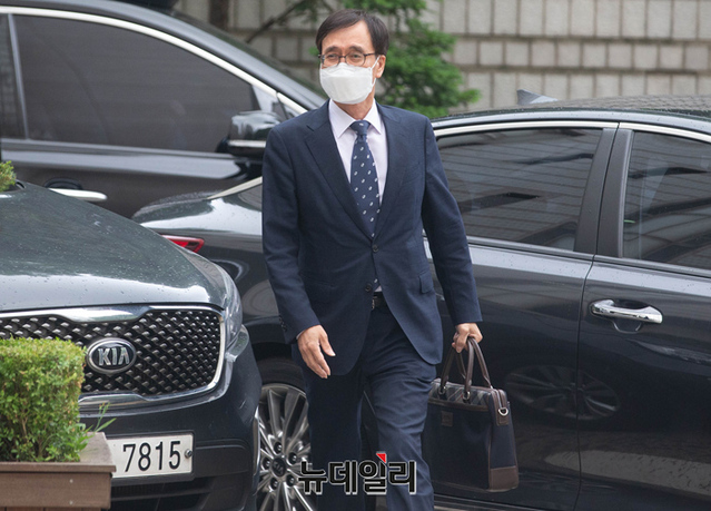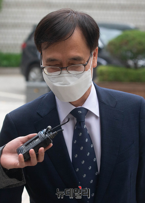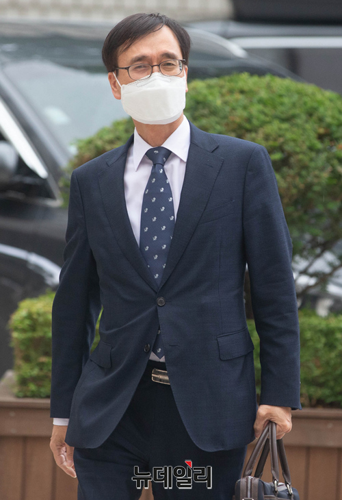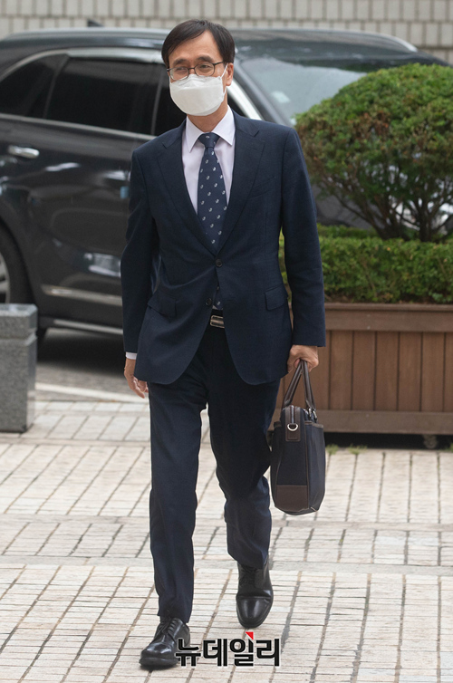 압수수색 과정에서 한동훈 검사장을 폭행한 혐의로 재판에 넘겨진 정진웅 울산지검 차장검사가 9일 오전 서울 서초구 서울중앙지방법원에서 열린 1심 결심 공판에 출석하고 있다.