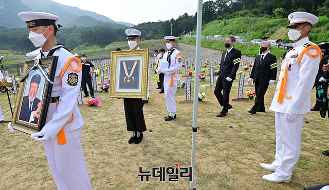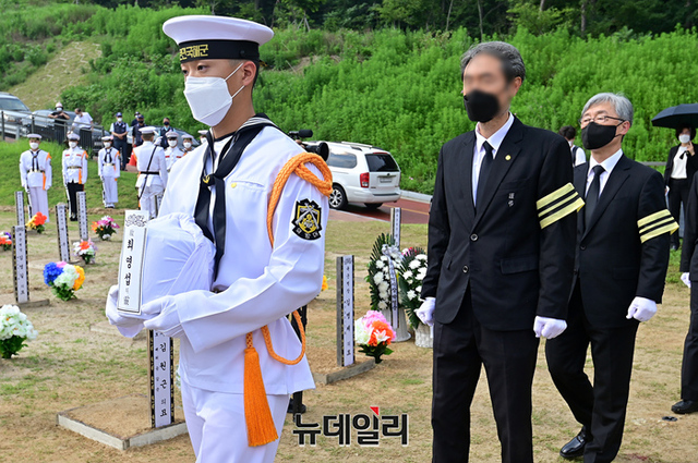 고 최영섭 대령 영현이 10일 오후 대전 유성구 국립대전현충원에 마련된 묘역에 들어서고 있다. (대전=정상윤 기자)