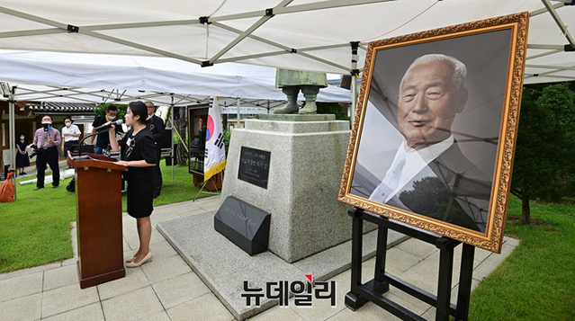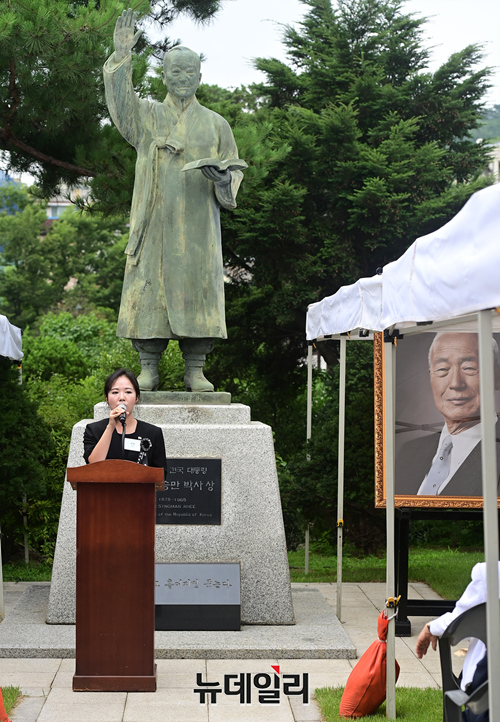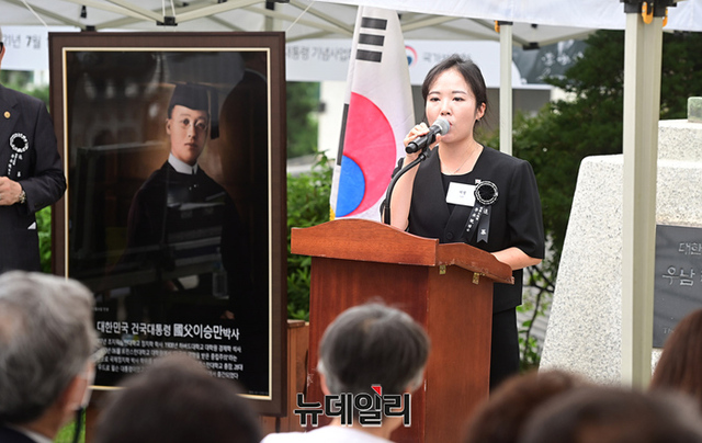 [포토] 우남 서거 56주기 추모식 '대통령 할아버지께' 헌사하는 여명 시의원