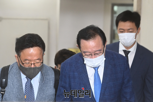 '공직선거법위반 등' 혐의를 받고 있는 송철호 울산시장이 12일 오전 서울 서초구 서울중앙지법에서 진행된 9차 공판에 출석하고 있다.