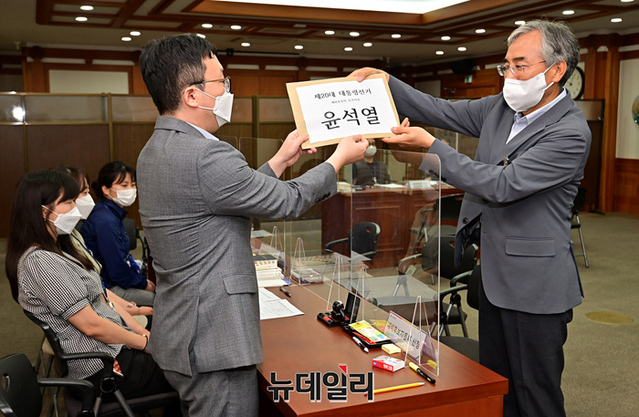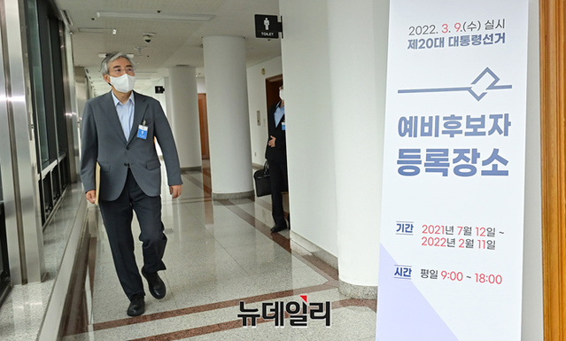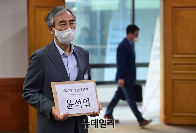 윤석열 캠프 좌장 역할을 맡고 있는 이석준 전 국무조정실장이 12일 오전 경기 과천시 중앙선거관리위원회에 마련된 접수처에 윤 전 총장의 제20대 대통령선거 예비후보 등록을 위해 입장하고 있다.이 전 실장은 "윤 전 총장이 공정과 상식이 바로 선 대한민국을 국민과 함께 만들어가겠다는 일념에는 변함이 없다"고 말했다.제20대 대통령 선거 예비 후보자 등록은 7월 12일부터 내년 2월 11일까지 중앙선관위 접수처에서 진행된다. 대통령 선거는 내년 3월 9일 실시된다. (경기 과천=정상윤 기자)