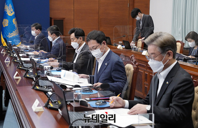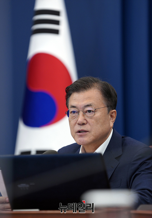 문재인 대통령이 12일 오후 청와대 여민관에서 오세훈 서울시장, 이재명 경기지사, 박남춘 인천시장 등 수도권 지자체장들이 참석한 가운데 수도권 특별방역점검회의를 주재하고 있다. (사진=청와대)