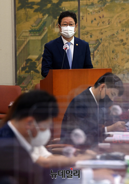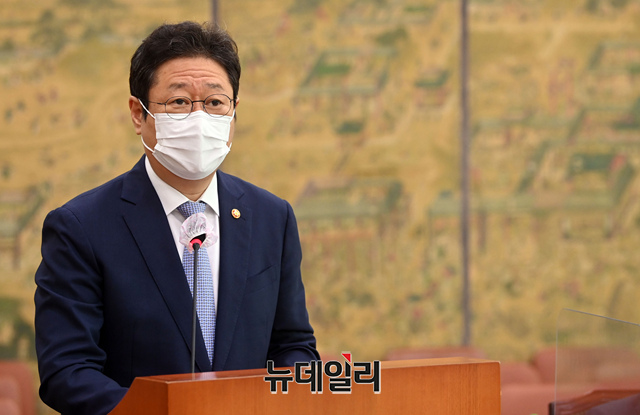 황희 문화체육관광부 장관이 13일 오전 국회에서 열린 국회 문화체육관광위원회에 출석해 업무보고를 하고 있다. (사진=공동취재단)