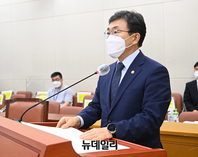 권덕철 보건복지부 장관이 13일 오전 국회에서 열린 보건복지위원회 전체회의에 참석해 정부측 인사말을 하고 있다. (사진=공동취재단)