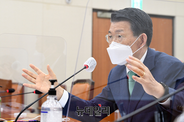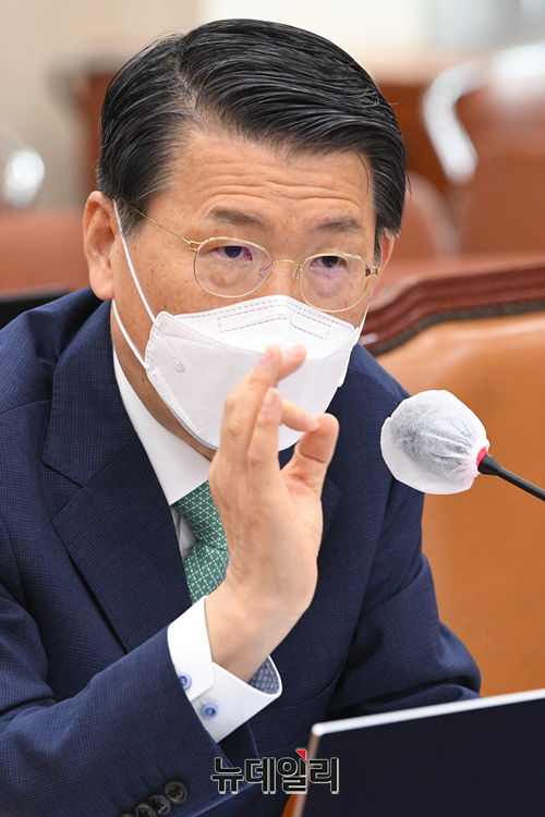 은성수 금융위원장이 13일 오전 국회에서 열린 정무위원회 전체회의에 참석해 가상자산업법과 관련한 질의에 답변하고 있다. (사진=공동취재단)