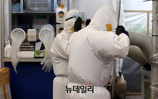 [포토] 낮 최고 35도 폭염과 싸우는 코로나 의료진