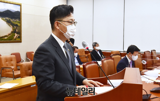 김현수 농림축산식품부 장관이 14일 오후 국회에서 열린 2021년도 제2회 추가경정예산안 국회 농림축산식품해양수산위원회 전체회의에 출석해 인사말을 하고 있다. (사진=공동취재단)