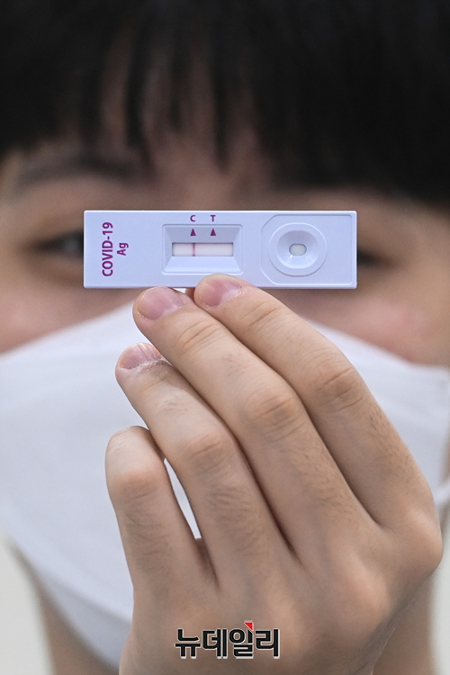 [포토] 전시관람 전 자가진단키트 검사 받는 관람객