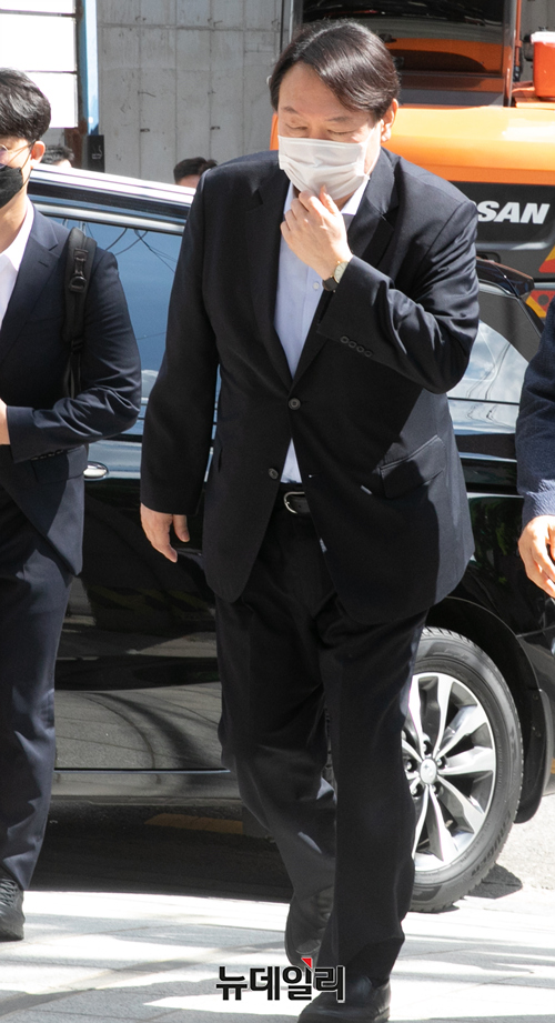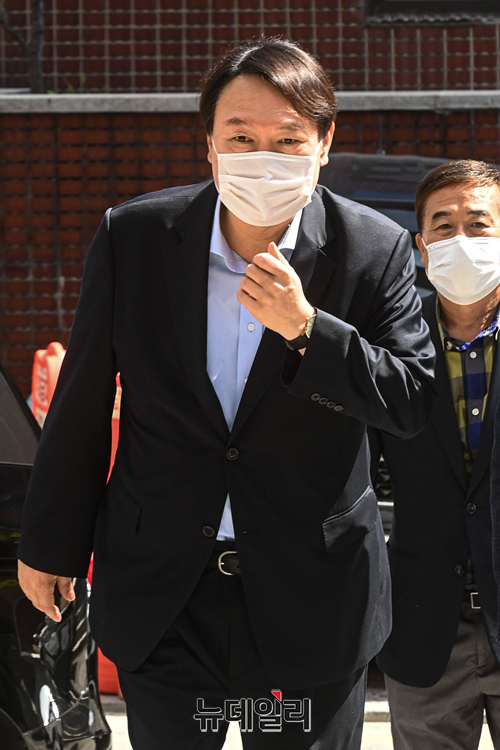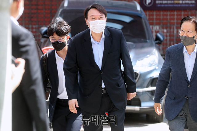 야권 대권주자인 윤석열 전 검찰총장이 15일 오전 서울 종로구 반기문재단에서 반기문 전 UN사무총장을 예방하기 위해 들어서고 있다. (사진=공동취재단)
