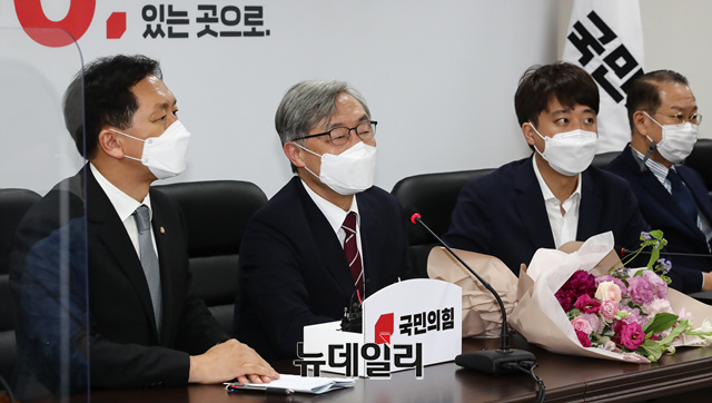 최재형 전 감사원장이 15일 서울 여의도 국민의힘 중앙당사에서 열린 입당식에서 소감을 밝히고 있다. (사진=공동취재단)