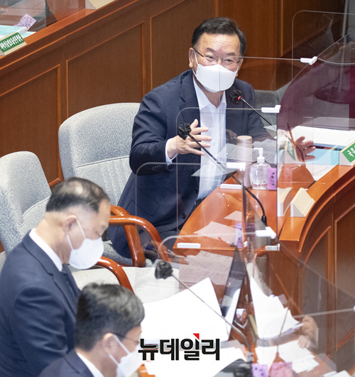 김부겸 국무총리가 15일 오전 국회에서 열린 예산결산특별위원회 전체회의에 출석해 의원들의 질문에 답하고 있다. (사진=공동취재단)