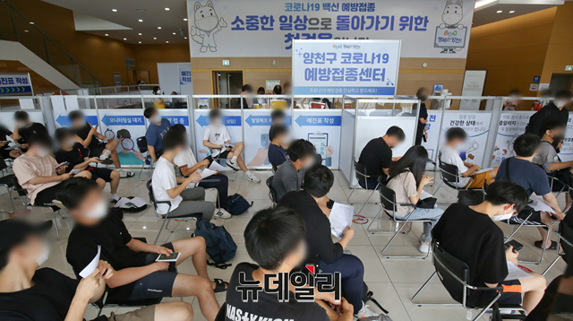 고등학교 3학년생·교직원 화이자 백신 1차 접종이 시작된 19일 오전 서울 양천구 해누리타운에 마련된 코로나19 백신 예방접종센터에서 고3 학생, 교직원 등이 접종 대기를 하고 있다.