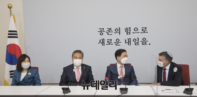 김기현 국민의힘 원내대표가 19일 오후 국회를 예방한 아키바 토르 주한 이스라엘 대사를 접견하고 환담을 나누고 있다. (사진=공동취재단)