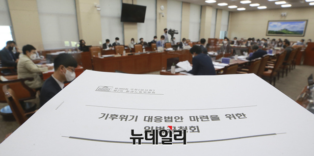 기후위기 대응법안 마련을 위한 입법공청회가 20일 오전 국회 환경노동위원회 환경법안심사소위원회에서 열리고 있다. (사진=공도취재단)