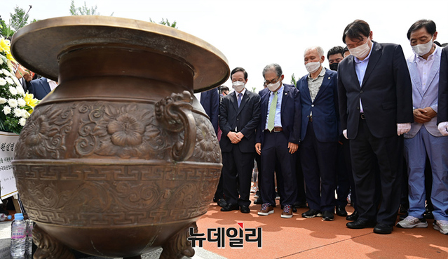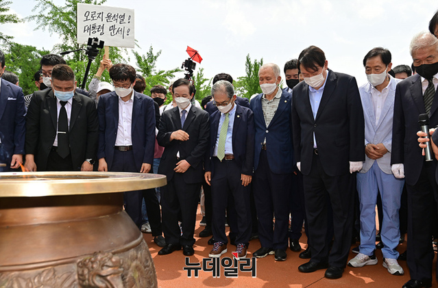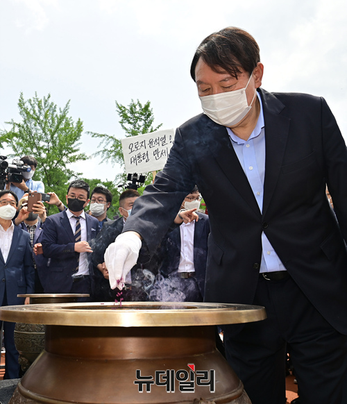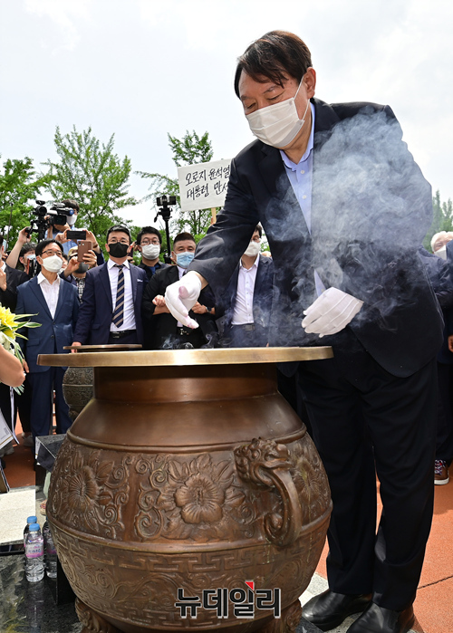 대선 출마를 선언한 윤석열 전 검찰총장이 20일 오전 대구 달서구 2.28기념탑을 분향하고 있다. 윤 전 총장은 이날 대구를 방문해 2.28기념탑 참배를 시작으로 서문시장, 동성로, 동산병원, 창조경제혁신센터 등을 방문했다. (대구=정상윤 기자)