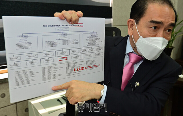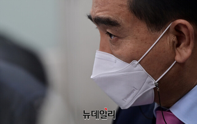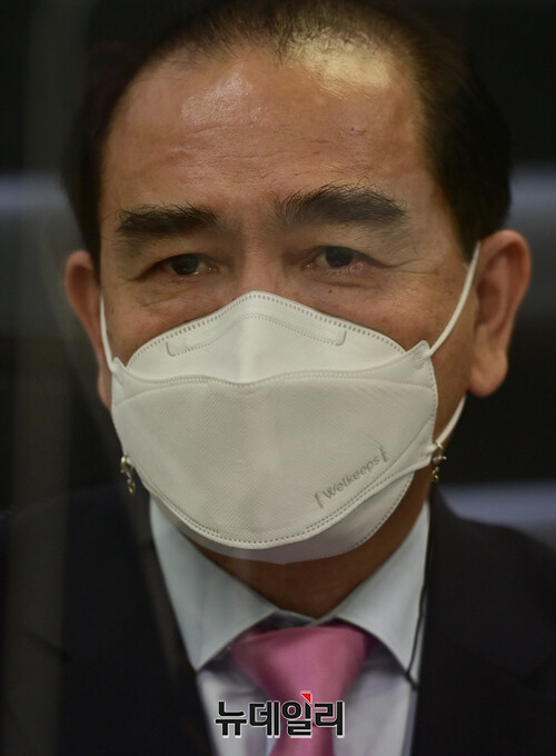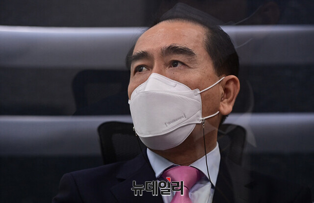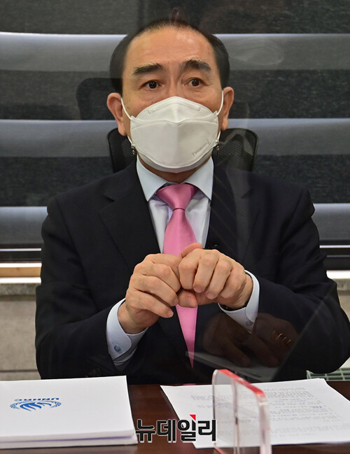 태영호 국민의힘 의원이 15일 오후 서울 강남구 지역구 사무실에서 통일부 기능조정과 새로운 대북전략 수립에 관련해 뉴데일리와 인터뷰를 갖고 있다.